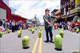 佳午西瓜節 登場 昨有上千人到佳冬廣惠宮前立西瓜 記者陳彥廷攝 formosa fruit