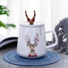 咖啡杯子 ins创意鹿角陶瓷杯带盖卡通马克杯学生情侣咖啡 阿里巴巴 christmas mugs ceramic mugs ceramic cups